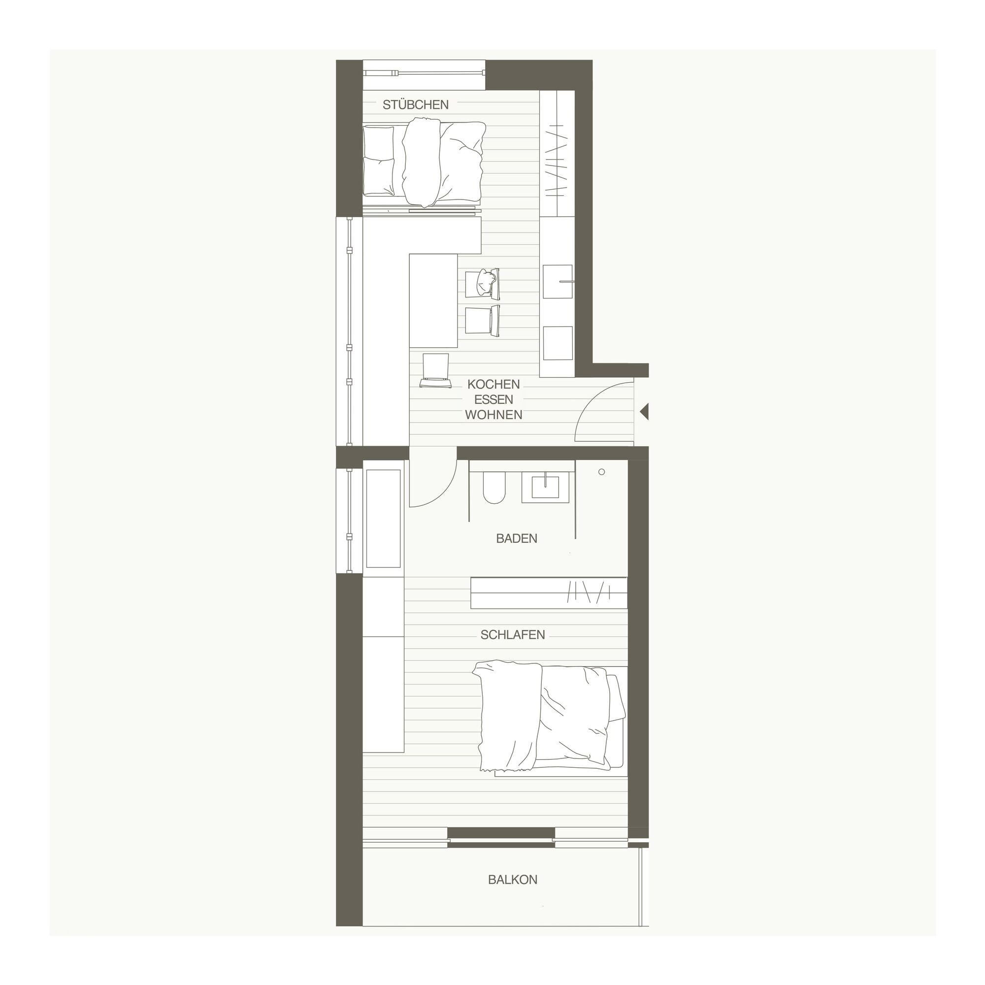 1 Stübchen, Bett 140 x 200cm, TV under cover
