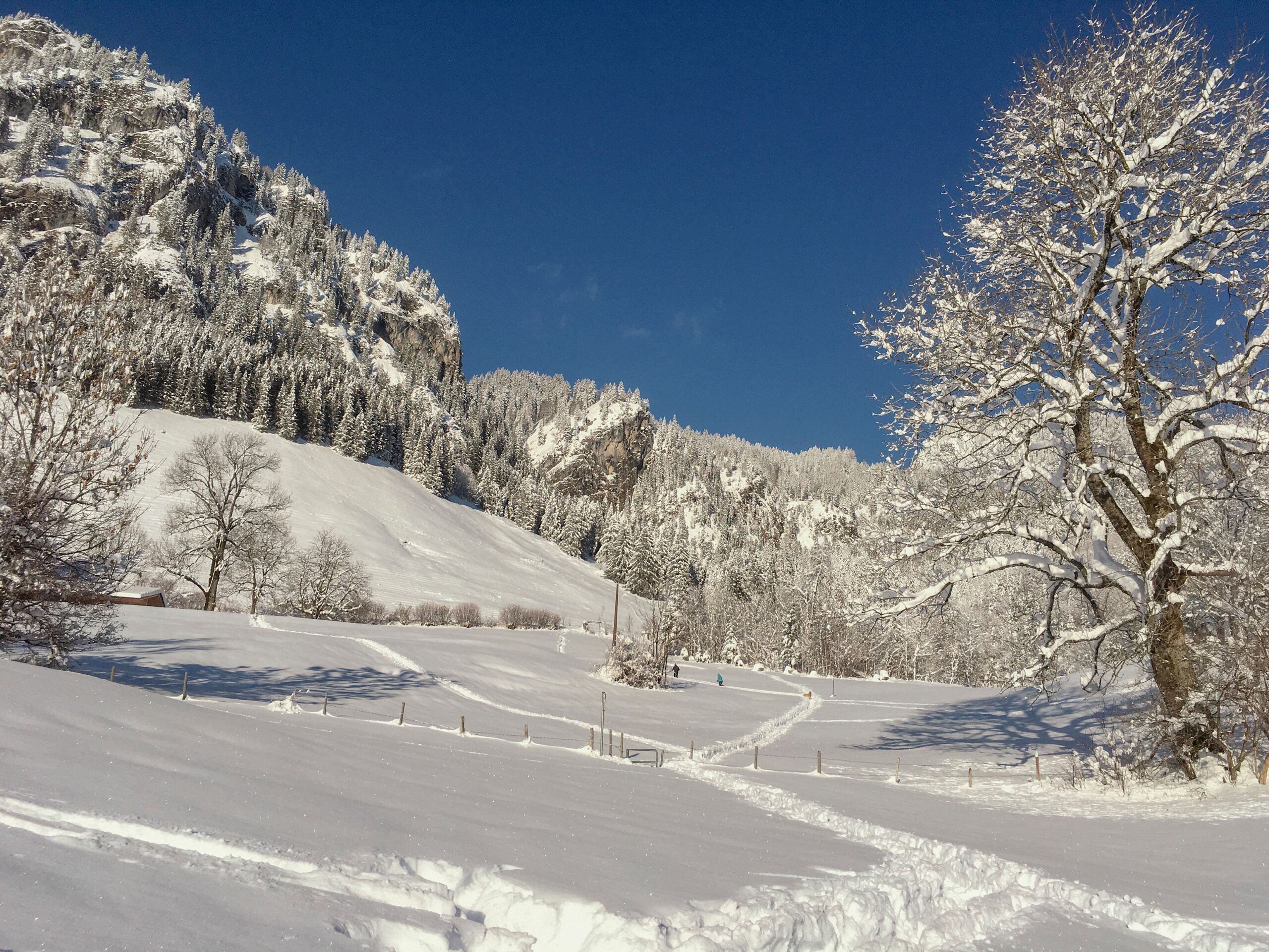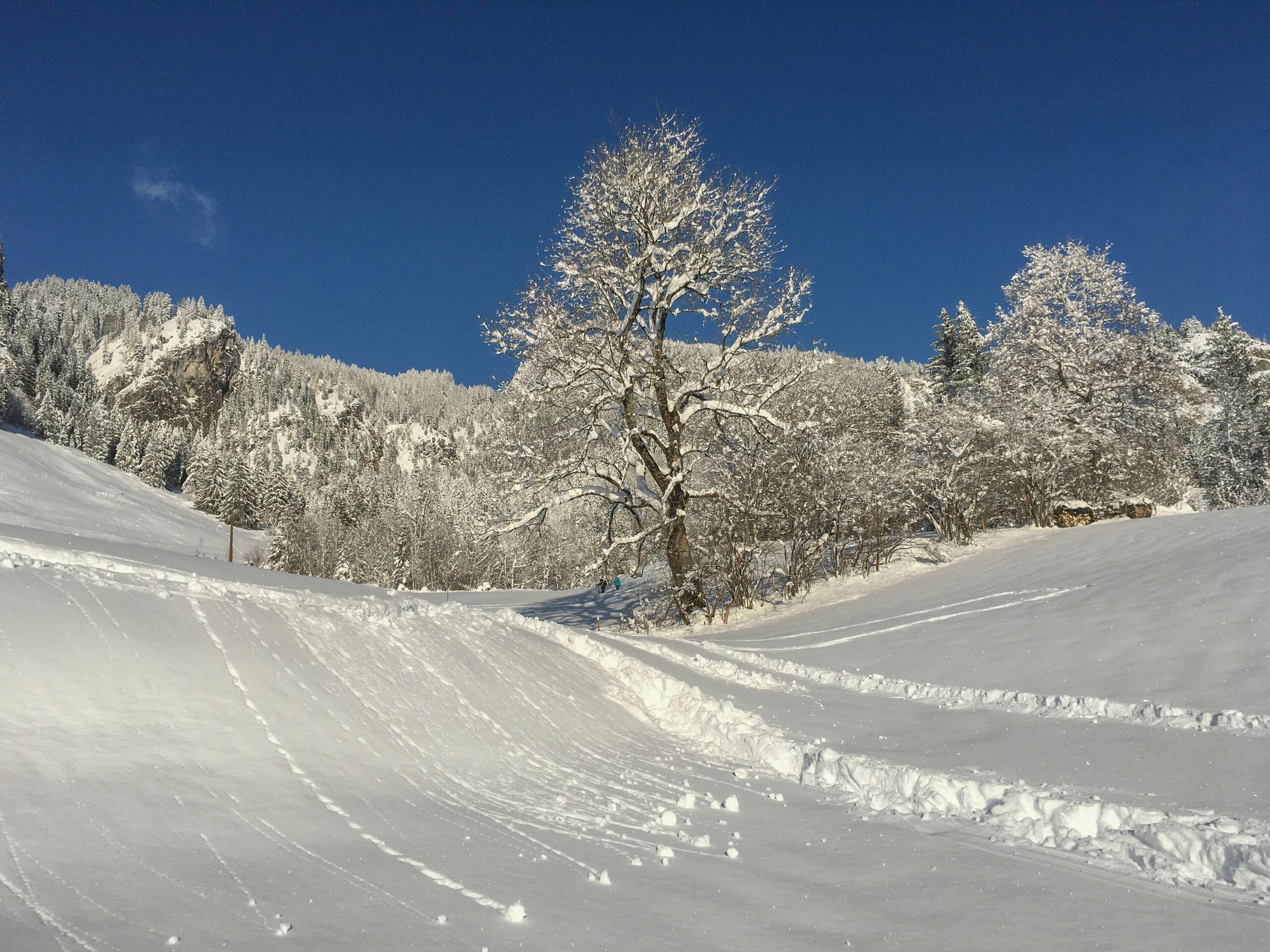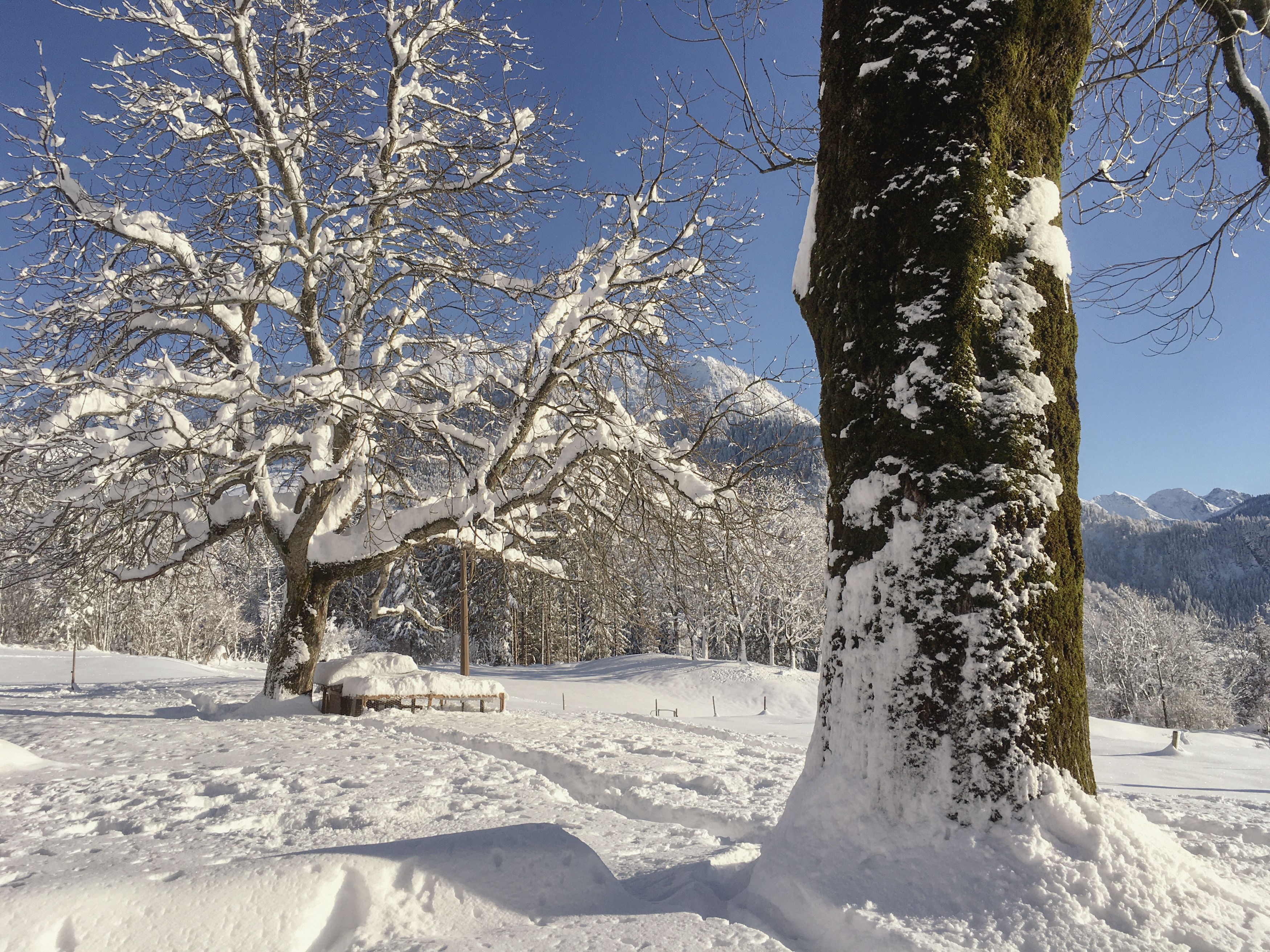 Es ist still hier, nur wenige Gehminuten oberhalb von Bad Hindelang. Ein Ort, um sich der Ruhe hinzugeben und Kraft zu schöpfen. Jeder Blick in die Ferne ist eine Einladung zur Erholung. Das perfekte Refugium und der ideale Ausgangspunkt, um das Auto stehen zu lassen und direkt ab der Haustüre aufzubrechen: Im Sommer zu Berg-, Wander- und Radtouren, im Winter zu Loipen, Pisten und Rodelbahnen – kostenlos mit dem örtlichen Nahverkehr. Ski- und Rodelpass sind gratis.